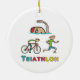 Triathlon-designen visar simning, körning och cykling med ord Triathlon i nedanstående fönster. En roligt grafik för personer som vill ha en fysisk utmaning i tuffen.
