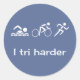 Vit design i blått för en roligt-dekal för en triatlete. "Jag är hårdare" med piktogramikoner för de tre triatondisciplinerna.