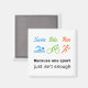 En rolig och inspirerande magnet för en triatlet. Texten är "För att en sport inte räcker". Det finns tre simmors cykelikoner i springa för att beskriva en triatlon, i blått, grönt och orange.