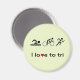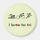 En rolig och inspirerande magnet för en triatlet. Ord är "I kärlek to tri" med en hjärtform och tre piktogramsymboler som representerar tre delar av en triatlon: simma Cykling och springa.
