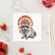 En charmerande vattenfärgsillustration av en tvättbjörn med en utförlig stamhögdager försedd med vibrerande röda fjädrar och orange fjädrar. Med denna utformning blandas rackokonrernas lekliga nyfikenhet med en aning bohemisk anda, den skapar perfekt för naturen älskare, djurlivets entusiaster och de som uppskattar stamestetik och rustik estetik. Perfekt för kläder, hemdekanter och tillbehör som visar en unik fusion av vildmark och konst.
