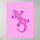 Gecko mönstrad med en batikbaserad textil - lätt orkidé och snäcka rosa accentuerad med vitt och konturerad i djupa orkidéer, med en lätt snäcka rosa och orkidébakgrund i mönster poster