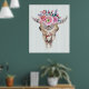 Tribal Bull Skull & Rosa Watercolor Flowers Poster