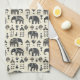 Rustik tribal elefantmönster kökshandduk med djärva svarta elefantsilhuetter, geometriska motiv och folkligt inspirerade detaljer på en neutral strukturerad bakgrund. En stilren och tidlös design som är idealisk för safariälskare, boho-dekorationsfans, nurseriteman och alla som älskar etniskinspirerad konst.
