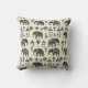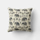Rustik tribal elefantmönstrad kastkudde med djärva svarta elefantsilhuetter, geometriska motiv och folkligt inspirerade detaljer på en neutral strukturerad bakgrund. En stilren och tidlös design som är idealisk för safariälskare, boho-dekorationsfans, för barnkammarteman och alla som älskar etniskinspirerad konst.
