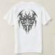 A complex, symmetrical piece of tribal line art that forms a tapered, heart-like silhouette. The design features elegant spiral flourishes at the top and interlocking sharp blades throughout, rendered with a metallic, shaded texture