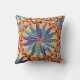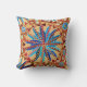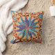 Dekorativ kudde i ett modernt stam-/etnisk avtryck av kapslat mandala hjul och trianglar, med tropiska drag - skuggor av kameltan, beige och varm brun, accentuerade med ljus till mörk denim blue