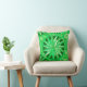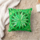 Dekorativ kudde i ett modernt stam-/etnisk avtryck av kapslade mandala hjul och trianglar, med tropiska drag - blad av kalkgrön grönt och mörk framkallar , accentuerad med grädde