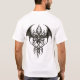 An intricate and symmetrical tribal crest featuring a central geometric totem flanked by large, stylized bat wings. The design is rendered with a weathered obsidian stone and metallic texture, providing an ancient, heavy aesthetic. Sharp, curved linework and interwoven patterns create a powerful silhouette