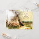Den här bröllopsinbjudan har en vacker vattenfärgstam mot en scenisk bakgrund. På baksidan ovanför texten finns det en boho-pil med hjärtan och viner.