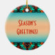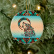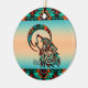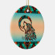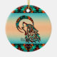 Anpassa den här "Ett av ett slag"-Vargen julprydnad! Den har en stambaserad Varg Howling vid Måne på en turkos- och Orange-bakgrund... omgiven av turkos, Orange och svart Gräns! Original Art Design by Artist Kerry Miller.