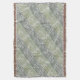 Ett invecklat abstrakt mönster bestående av brutna diagonala linjer i olika nyanser av grönt med en tribal känsla.