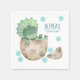 Dinosaur-temat pojkduschnapkins har en söt triceratops som kläcker ur ett ägg med blå dinosauriespår. Art av KL Lagrar