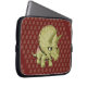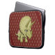 En ung triceratops på en tilltalande djup rödbrun mönstrad bakgrund.
