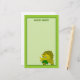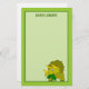 Detta gulliga personifierade papper för dinosaurungebrevpapper har en tecknadTriceratops på bekläda. Det har tre horns och äter några gröna löv. Bakgrundspapperet är grönt med en grön gräns.