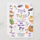 Trick or Three! Söt lila Halloween 3-års födelseda Inbjudningar