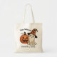 This charming (and slightly scary) faux embroidered Black and Orange Trick and Treat Budget Tote Bag is a charmer -- with a friendly ghost hovering next to and happy pumpkin -- both well dressed for their special evening. With Fun script for "Happy Halloween" and personalized with the trick-or-treater's name, this will make a wonderful accompaniment for Halloween Eve. Any design questions, just send a message or an email to charmdesignstudio@rcn.com and we'll be delighted to assist.