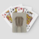 Spelkort med en fossilt trilobitdesign i tan och brons.