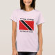 På bekläda av denna skjorta medföljer en redigerbar titel och slogan den Trinidadian flagga med dess fimbriated svart diagonal för vit på en röd bakgrund. Baksidaen visar en specificerad karta av Trinidad och Tobago.
