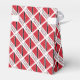 Personlig tält formad favör som visar den röda, vita och svarta Trinidadiska och Tobagoniska flagga med ord TRINIDAD OCH TOBAGO nedan. Designen visas med jämna mellanrum för ett konstnärligt utseende. En vit rektangel med fyrkantiga fyrkanter ger ett ställe för ett namn för personanpassning. Roligt för familjeåterföreningar, resegrupper och klubbar.