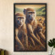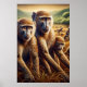 Tre energiska apor leker i en lush grönt fält, deras livliga antik fångades i en vibrerande målning som brast med färg och rörelse.