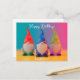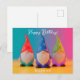 Trio av glänsande keramiska trädgårdstomtefigurer  vykort