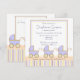Tre gånger roligten! Det är meddelandet på den här babyduschinbjudan som innehåller tre vidsträckta blå baby-vagnar med blått, gult och brunt rand.