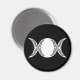 Den traditionella trippelgudinna-symbolen (vaxning, fullt och avtagande måne som representerar mor och kronaspekter) med ett halvmånsformat mönster.