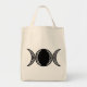 Den traditionella trippelgudinna-symbolen (vaxning, fullt och avtagande måne som representerar mor och kronaspekter) med ett halvmånsformat mönster.