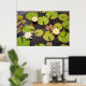 Elevate your interior design with the balanced, natural geometry of the Triple Lotus & Lily Pad Pattern Poster. Captured from a unique bird’s-eye view, this photograph showcases a trio of pristine white-water lilies nestled among a mosaic of floating green and bronze lily pads.