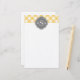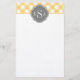 Triple Monogram Grått Gult Gingham Mönster Brevpapper