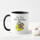 Triplet Första födelsedag T-tröjor, kroppsdräkter, tote bags, knappar, magneter, kort och annat med två pojkar och en flickapa och en stor gult banan!