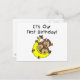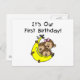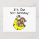 Triplet Första födelsedag T-tröjor, kroppsdräkter, tote bags, knappar, magneter, kort och annat med två pojkar och en flickapa och en stor gult banan!