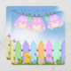 Trippar flicka som hänger på klotesen med betesstängsel, anka, groda och blommor.