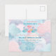 A pretty cloudy blue and pink background completes the invitation.
