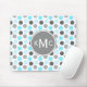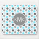 Trendig, chic, girblått och grått-polka punkt mönster med anpassade trio av monogram som representerar er första, sista och mitten namn. En coola, modern, geometrisk monogrammad gåva till henne.
