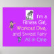 Jag är Fitness Girl, Workout Diva och Sweat Fairy, allt i ett. Få flickans trippelslogan för den klubb kvinna som kärlek ska passa, träna ut och vara söt trots svettningen. Coola. Roligt. Hög. Bara höger för dig!