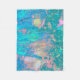 Trippy Aqua Sunrise med Psychedelic Flowers Fleecefilt