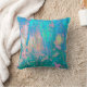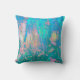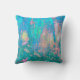 Trippy Aqua Sunrise med Psychedelic Flowers Kudde