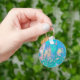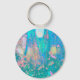 Trippy Aqua Sunrise med Psychedelic Flowers Nyckelring