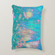 Trippy Aqua Sunrise med Psychedelic Flowers Prydnadskudde