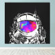 En färgfull teckning med astronaut med sitt rymdesuit någonstans i svart utrymme medan rymdfararens hjälm reflekterar ett färgstarkt ytrumnebuli som dekorativt kanvastryck.