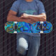 Uttryck ditt unika stil med vår trippelskärmsskateboard abstrakt, med en coola blå utformning. Denna tavla är endast tillgänglig som däck eller som en komplett skateboard med lastbilar och hjul, och är perfekt för skater som vill resa sig. Ride i stil och njut av den perfekt kombinationen av konst och prestanda med den här fristående skateboard.