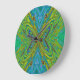 Trippy Chartreuse och Blue Abstrakt Butterfly Stor Klocka
