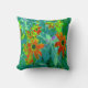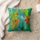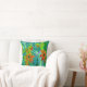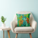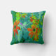 Trippy Gult och Red Wildblommor på Retro Blue Kudde