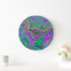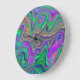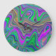 Trippy Lime Green och Lila Vågar Färg Stor Klocka
