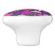 Den här keramiska knoppen dekoreras med trippy, psychedelic illustrerade svampar och blommor i nyanser av shock rosa och fet lila mot svart bakgrund.