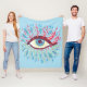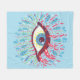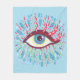 Psykedelisk filt från öga med en färgfull illustration av en konstig blå öga med stora glättade rosa-ögonfransar, ljusblå tårar som flödar överallt och många rosa och grönt inslag - utökning av ögonfransarna.
