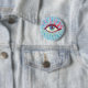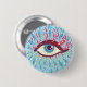 Knappen Psychedelic öga med en färgfull illustration av konstigen blå öga med stora glatta rosa ögonfransar, ljusblått tårar som flödar överallt och många rosa och grönt inslag - utökning av ögonfransarna.