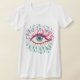 Psykedelisk t-shirt från öga med en färgfull illustration av en konstig blå öga med stora böjda rosa-ögonfransar, ljusblått tårar som flödar överallt och många rosa och grönt inslag - utökning av ögonfransarna.